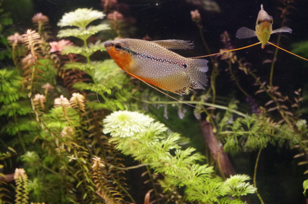 Le gourami perlé est un poisson qui réside naturellement à mi-profondeur ou dans le haut de l'aquarium C'est une espèce au tempérament calme. Le gourami perlé reste un poisson plutôt paisible qui se comporte généralement de manière pacifique avec les autres espèces.
