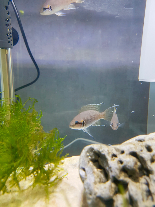 Suite à de nombreuses naissances, je donne 5 Ciclidès du lac Tanganyika : Neolamprologus bricardi ou Princesse du burundi "; taille 3 adulte et 2 jeunes.