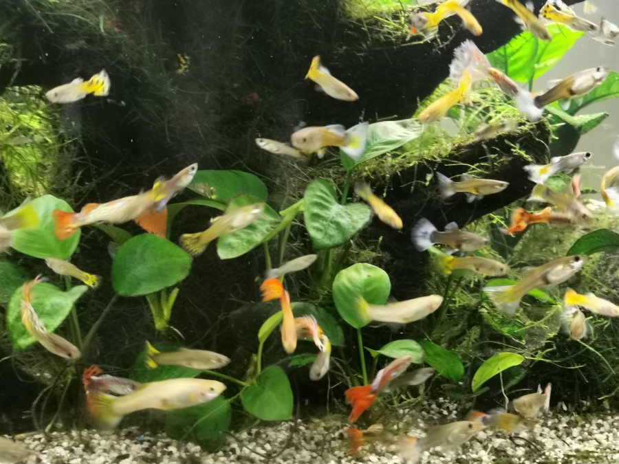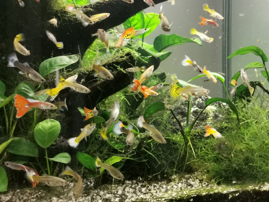 Donne guppys mâles et femelles.