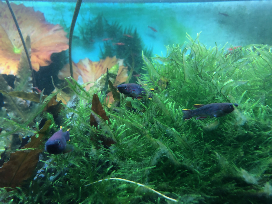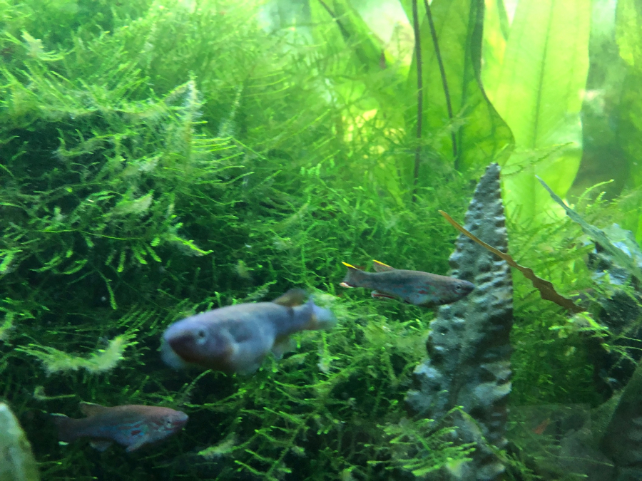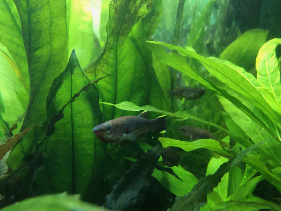 Donne Killies ( Gardneri) males et femelles. 2 à 5 cm. En mains propres. Fundulopanchax gardneri (Aphyosemion gardneri). Crevettes Neocaridina heteropoda Red Fire