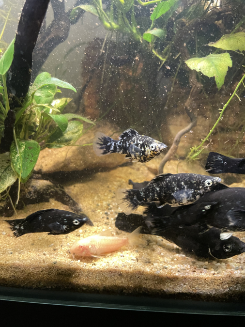 Donne une douzaine de Molly « dalmatien » car pas de bac assez grand pour les accueillir correctement. L’ancien propriétaire s’en débarrassait avant son déménagement