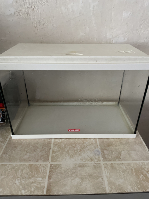 Je donne un petit aquarium simple sans déco ni pompe ni éclairage . ( en cours de nettoyage sur la photo )
