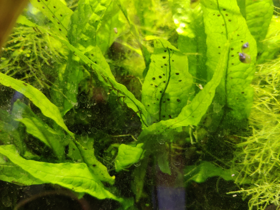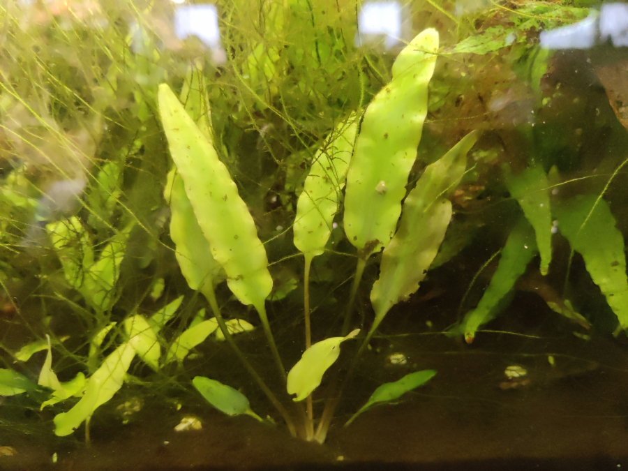 Mousse de java, Microsorium, cryptocorynes, Anubias, Papyrus, Riccia.