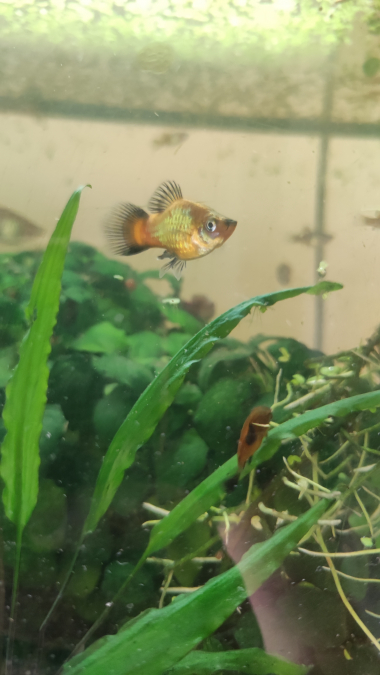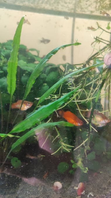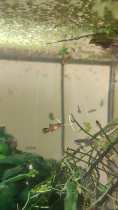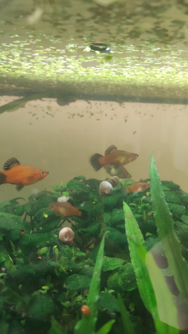 Bonjour à tous ! Il y a un peu moins de 2 ans, j'ai sauvé 5 platys d'une fin malheureuse (poissons d'une école maternelle que personne ne voulait récupérer à l'approche des vacances...). Je les ai récupérés, acclimatés dans mon 60L qui ne contenait que des Red Cherry et quelques corydoras. Ils se sont plu... BEAUCOUP plu ! Je n'avais pas anticipé les repros et je suis désormais envahie de platys. J'ai une dizaine d'adultes (env 1/4 femelles, le reste mâles) et une trentaine de jeunes de tous âges. Ils sont super robustes et de couleurs variées (pas mal de rainbow wagtail, et aussi du red wagtail et gold wagtail). Qui aurait de la place chez elle/lui pour en accueillir ? J'ai perdu le contrôle de la situation je crois ? Merciiii beaucoup par avance pour vos réponses ❤️❤️❤️