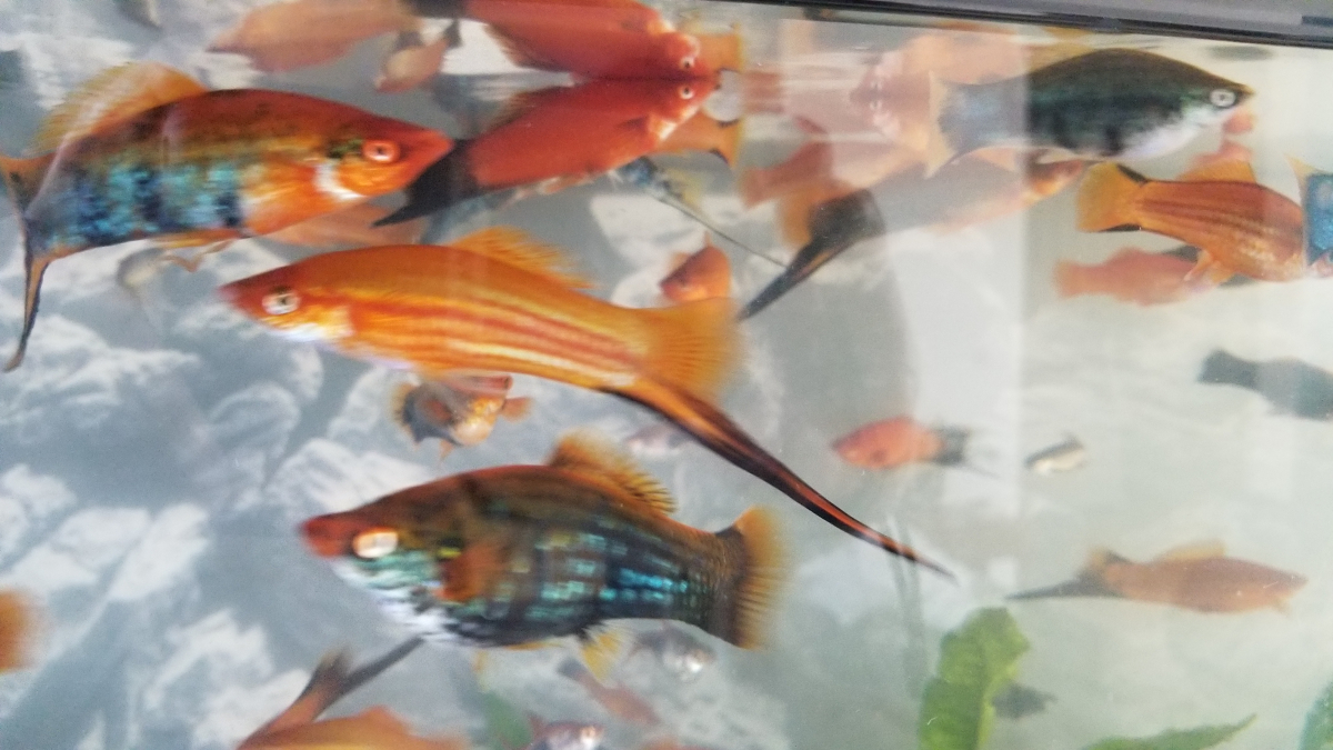 Donne une trentaine d'individus de tous âges, mâles et femelles, coloris : de orange à noir, certains avec reflets bleutés. A prélever dans mon aquarium à Voisins-le-Bretonneux (78) en region parisienne, avec contenant adapté.