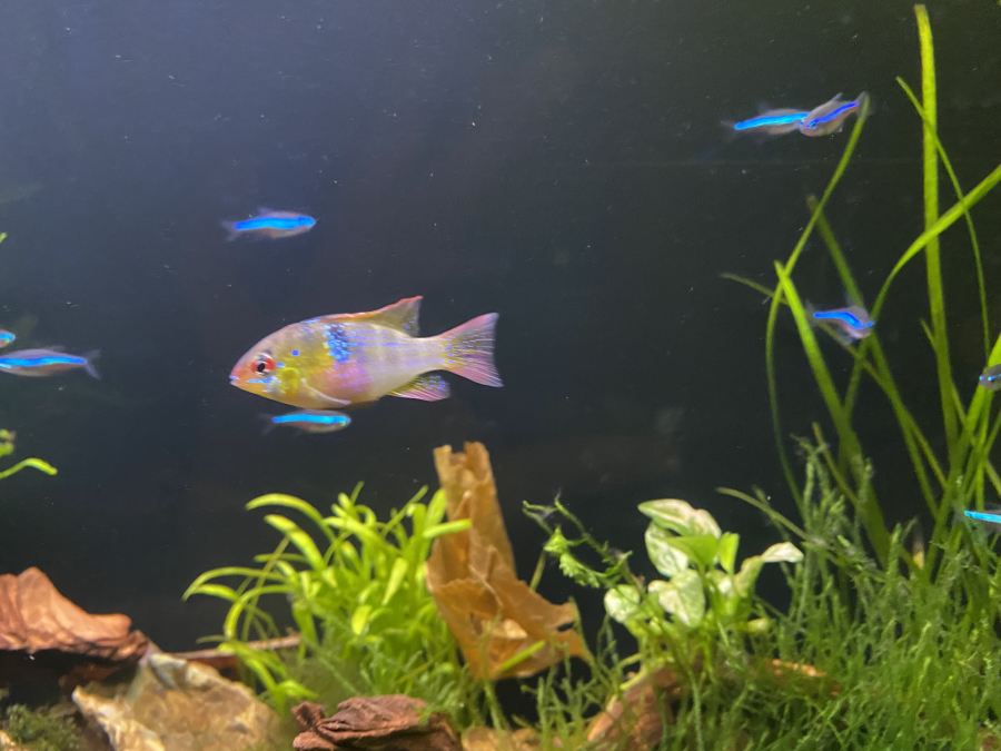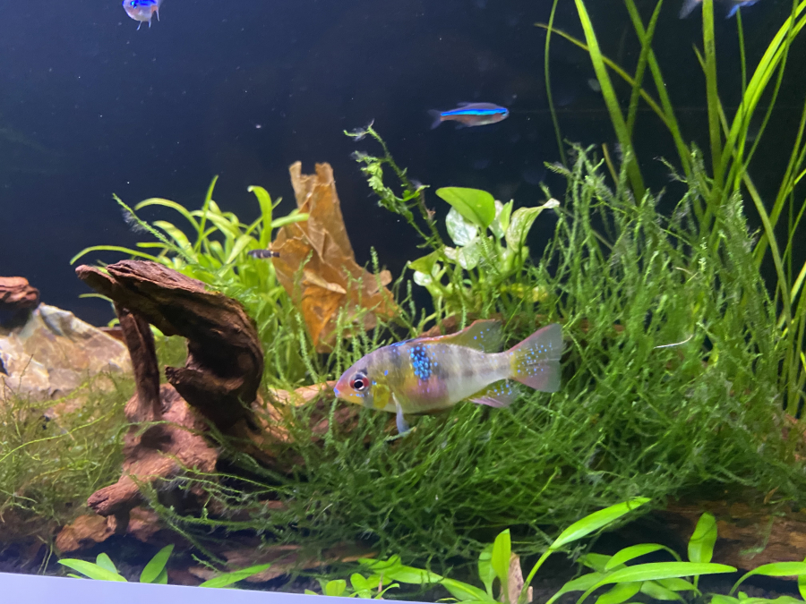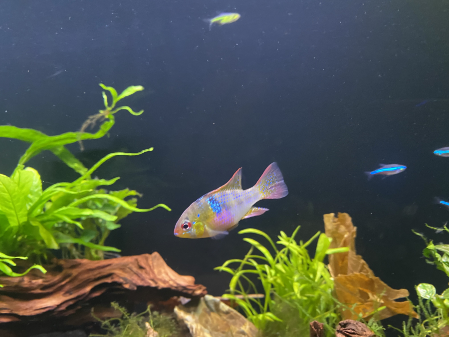 Je me sépare d’un joli ramirezi femelle. Echange si possible contre ramirezi male ou materie ou fourniture. Echange sur Grenoble.