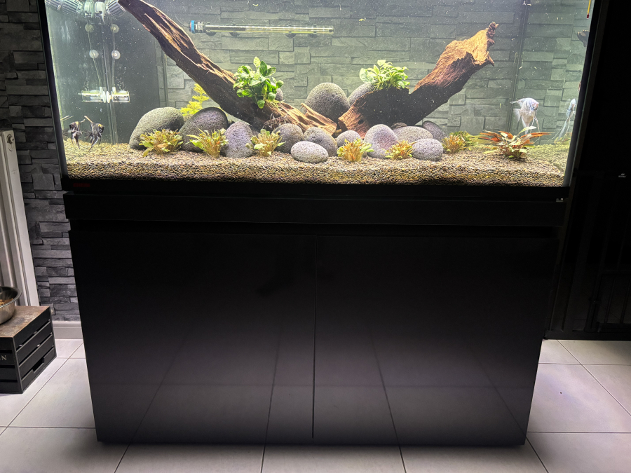 AQUARIUM 240L EHEIM + meuble  gris avec sa pompe EHEIM 400+ l