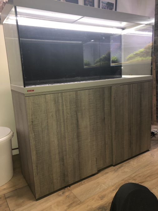 Aquarium Eheim Vivaline 240, vendu avec son éclairage et chauffage d’origine. Vendu sans filtre. Bac en bon état, quelques rayures sur la façade. Meuble chêne gris en très bon état, fond noir en place, peut-être retiré très facilement.