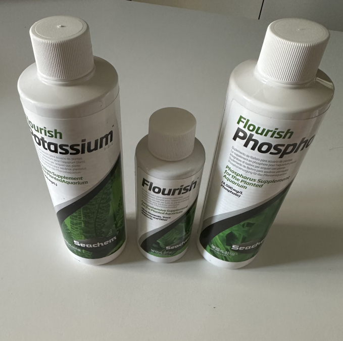 Je vends des engrais Seachem Phosphorus 250ml / Potassium 250ml & Flourish 100ml neufs (opercule toujours présente) + 1 paquet APT 2HR plein (manque 4 pastilles sur 18 + 1 Seachem Trace 250ml bien remplie + une recharge de fast checker neuve. Valeur totale si acheté neuf : 55€ Prix de vente : 30€
