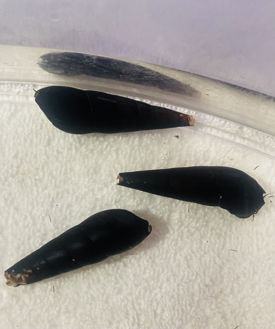 Les escargots Faunus Ater. Ils font entre 6-8 cm.