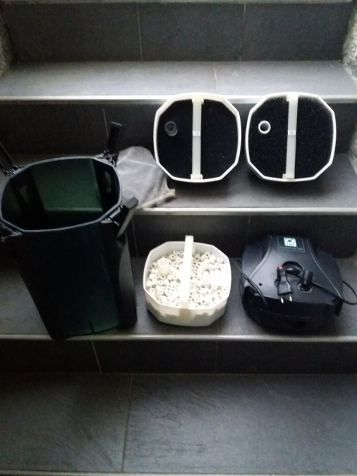 Vends 1 filtre externe JBL CristalProfi 500 1200L/h, hauteur de refoulement 2,1 mètres. Fonctionne très bien, silencieux et performant. Vendu dans sa boite d'origine avec notice, toutes les masses filtrantes. Vendu complet avec tuyaux, robinets, raccords, canne d'aspiration, rejet....etc. Envoi possible.