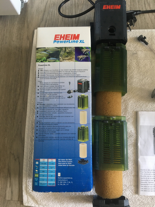 EHEIM PowerLine XL est un filtre interne puissant. Idéal pour aquariums jusqu'à 200 litres avec un débit de 1200 l/h. Consommation : 28 watts Acheté tout neuf en juin 2019 (utilisé durant 10 mois) Vendu avec tous les accessoires d'origines, plusieurs types de sortie d'eau possible (voir photos). Possibilité de changer la face où l'on souhaite fixer le filtre etc... Très bien entretenu jusqu'à maintenant, bien nettoyé depuis ça dernière utilisation Valeur neuf 120€, ouvert au négociations (dans la limite du raisonnable)