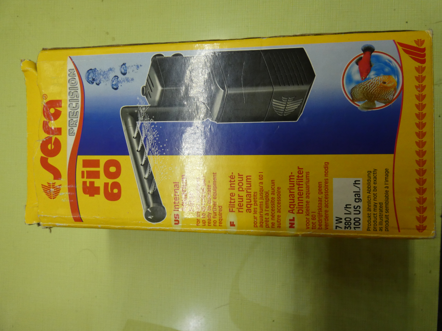 Filtre interne SERA FIL60 NEUF dans son emballage d'origine. _ 380 L/H / 7 watts _ Environs 200 cm3 de volume pour médias filtrants. _ Mousse de préfiltration _ Casier amovible pour mettre le média filtrant de votre choix _ 6 ventouses pour une bonne fixation _ Canne de rejet percée + divers coudes & raccords _ Systéme venturi amovible _ Grille empéchant les médias filtrant de se coincer dans le rotor _ + ROTOR NEUF de rechange dans son blister