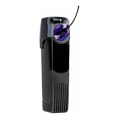 Filtre intérieur con\e7u pour le nettoyage et laération des aquariums. Outre une filtration efficace de leau, le dispositif stérilise leau en utilisant des LED à ultraviolets. Cela prévient contre la croissance dalgues et de bactéries pour garantir un meilleur environnement aux poissons. Les LED peuvent être allumés ou éteints indépendamment du filtre. La direction de la sortie deau peut être modifiée jusquà 90°.