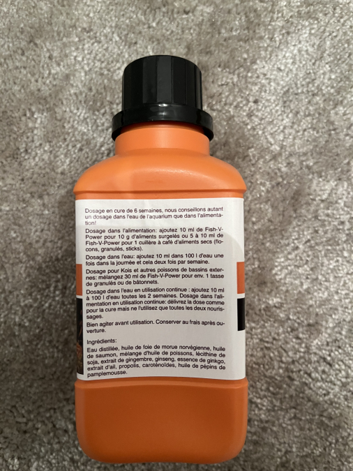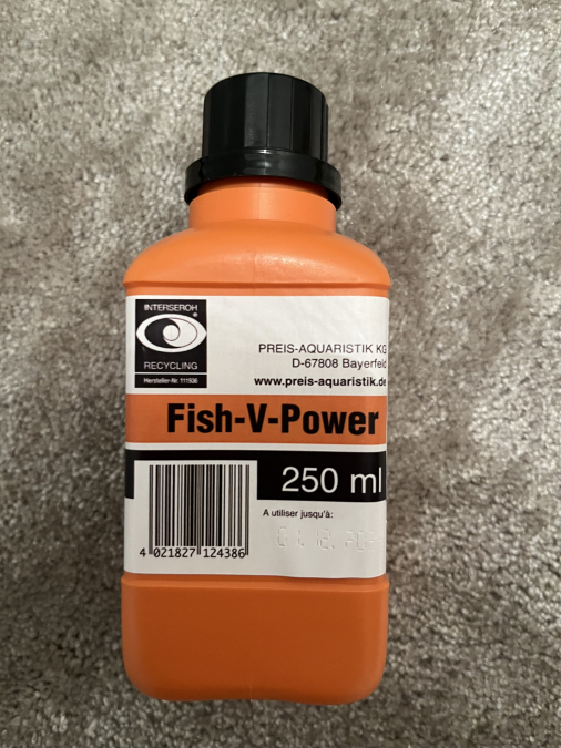 Fish-V-Power, tonifiant pour les poissons d´eau douce et d´eau de mer en aquariums. A utiliser régulièrement, en tant que traitement, après toute maladie, ou après l´acquisition de nouveaux sujets, ou encore afin d´aider les jeunes poissons à bien se développer. Ce nouveau produit de pointe contient non seulement des acides aminés tels que les acides gras oméga-3, mais également des ingrédients bénéfiques comme le ginseng, la propolis, le gingembre et le ginkgo, ainsi qu´une sélection bien spécifique d´huiles de poisson de haute qualité, composées en grande partie d´acides gras insaturés. En effet, les situations stressantes causées par les changements, les combats livrés aux autres poissons de la même espèce, ainsi que les longs transports, font en sorte que les poissons sont plus vulnérables aux éléments pathogènes et aux parasites. Ce produit peut être administré en permanence, afin de prévenir toute carence en vitamines. 2 articles achetés = 15% de remise >3 articles achetés= 20% de remise >4 articles achetés= 20% de remise plus livraison gratuite