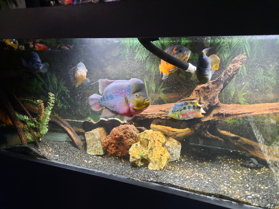 Faire proposition ou echange. 1 couple de salvinie jaune adultes et 1 flowerhorn adulte rpuge bleu 30/35cm.