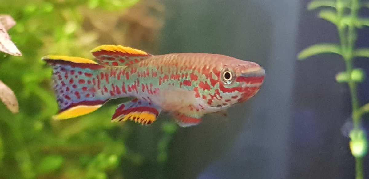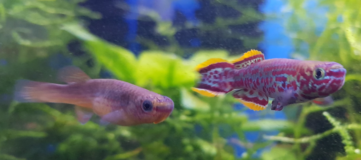 Nous sommes des Killis , notre famille FUNDULOPANCHAX Gardneri provient du Cameroun et du Nigeria . 12 Euros le couple ( mâles et femelles environ 6 mois ) Adultes les ‘filles’ mesurent environ 5.5 cms et les ‘garçons’ 6.5 cms notre durée de vie est d’environ 2 années . Nous vivrons à notre aise dans un petit bac de 20 litres SEULS ( c’est mieux pour les autres ) . Les commodités : un exhausteur avec sa petite pompe à air , un éclairage ( ou pas ) une eau de 20 à 25° ( donc un chauffage ou pas ) . La déco : un tapis de sable , de la mousse de Java ou de la fougère aquatique ( Varech ) . La restauration : nous mangeons de …. TOUT ( Vermivore , Omnivore , Carnivore , paillettes , granulés , congelés , vivants …. ) Si nous sommes bien , comme nos parents , nous vous ferons de très beaux petits ale-vins ( à consommer modérément bien sûr ) Enlèvement sur Noisy le Grand - 93160