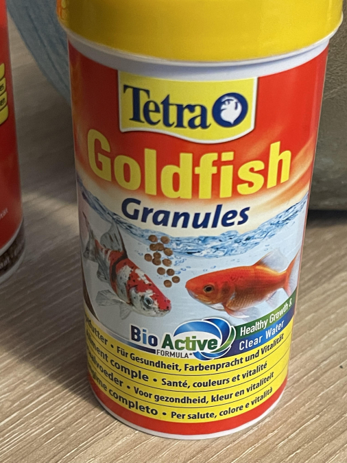 2 pots pleins de granulés flottant : tetra goldfish (pas utilisé).