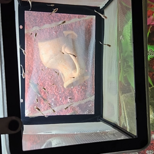 Bonjour, J'ai actuellement 4 femelles guppys (qui ne sont pas à vendre, la dernière photo est là pour montrer la couleur, la forme etc.. des mamans) Cependant celle-ci sont tombées enceinte (je ne sais pas si finalement on m'a vendu 1 mâle et 3 femelles au lieu de 4 femelles ou si elles étaient déjà en gestation avant) et je me retrouve maintenant avec une trentaine de guppys alevins. Ne pouvant tous les accueillir dans mon 60L ; ils sont pour le moment séparés des plus grands par un isoloir afin d'éviter d'être mangé, je me décide donc à les vendre pour 1€ symbolique unité. (Je n'avais absolument pas prévu de me retrouver avec toute une population et je souhaite rentabiliser un minimum le coût dépensé pour eux, étant étudiante.) Les photos sont floues mais impossible de faire prendre la pose à des poissons ! Mes autres guppys semblent être de nouveau en gestation, je risque d'en ravoir d'autres. Guppys alevins, 1€ unité, à venir chercher sur place ou rdv possible sur Caen.