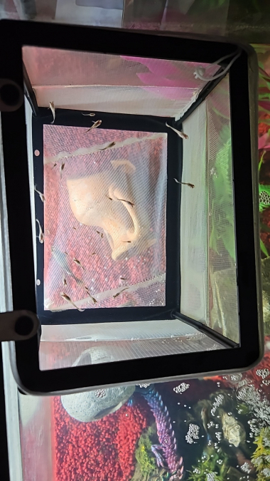 Bonjour, J'ai actuellement 4 femelles guppys (qui ne sont pas à vendre, la dernière photo est là pour montrer la couleur, la forme etc.. des mamans) Cependant celle-ci sont tombées enceinte (je ne sais pas si finalement on m'a vendu 1 mâle et 3 femelles au lieu de 4 femelles ou si elles étaient déjà en gestation avant) et je me retrouve maintenant avec une trentaine de guppys alevins. Ne pouvant tous les accueillir dans mon 60L ; ils sont pour le moment séparés des plus grands par un isoloir afin d'éviter d'être mangé, je me décide donc à les vendre pour 1€ symbolique unité. (Je n'avais absolument pas prévu de me retrouver avec toute une population et je souhaite rentabiliser un minimum le coût dépensé pour eux, étant étudiante.) Les photos sont floues mais impossible de faire prendre la pose à des poissons ! Mes autres guppys semblent être de nouveau en gestation, je risque d'en ravoir d'autres. Guppys alevins, 1€ unité, à venir chercher sur place ou rdv possible sur Caen.