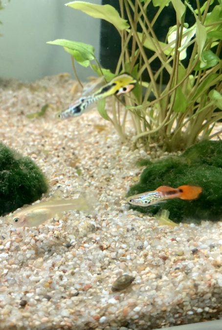 Je vend de jeunes guppy endler issu de ma production personnelle. 4 males guppy Endler 8 alevins non sexés car trop petits 3 femelles guppy Classic bout de queue jaune. Possibilitééchanger contre des crevettes ou néon ou danio rerio.