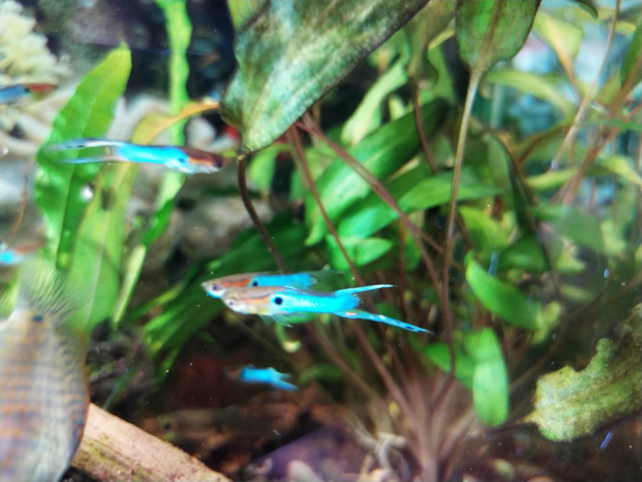 N'ayant plus la place, Je me separe des Guppy endler bleu mâle ou femelles.Taille adulte.