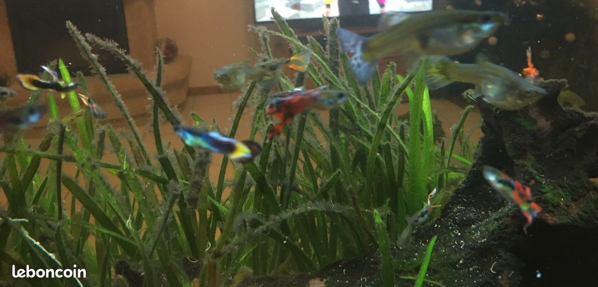 Je vends environ 50 guppys (endler et normaux, mâles et femelles) car j’ai une surpopulation dans l’aquarium. Je vends 1€50 les femelles et 1€ les mâles, les alevins sont eux vendu 50ct (prix unitaires) Je vends également des plantes d’aquarium : Des vallisneria à 1€ le plan Des cornifles immergés à 1€ la tige Et des lentilles d’eau à 1€ les 50 À venir chercher en main propre