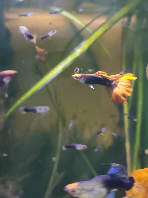 Je cede issus de mes reproductions de jeunes guppys koi tricolore de tres bonne souche , les parents ont des voiles de tres bonne dimension , les enfants sont issus de 3 couples donc la consanguinité est diminuées , ils sont habitués a l'eau de conduite normal , PH de 7.5 a 8 et temperature de 22 degrées ,les jeunes que je cede mesurent 3 cm environ .