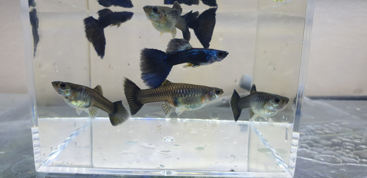 Suite aux plousieurs reproductions dans mes aquariums j'ai quelques guppys Blue Moscou - alevins 1cm lot de 3 (non sexable) - 5€ // 8 - 10€ - Jeune Couple - 8€ // 2 Jeune couples 14€ Envoi possible — a partir de 30€ de commande minimum (toutes annonces comprise)