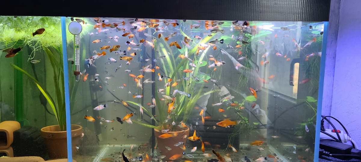 Cause surpopulation, vends plusieurs variétés de guppy (kohaku ou variés), platy (sunset ou corail ou zébré), xipho (berlinois et/ou rouges) et black molly Elevés aux nauplies d'artémias puis micro vers et congelés/paillettes/granulés