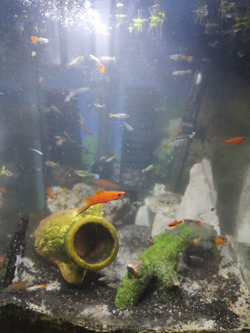 Suite repro je me sépare d'une partie de mes poissons, guppy divers dont guppy koï à 1€, xipho classique à 3€, xipho lyre ou voilé à 5€ et ancistrus super red à 5€ (3/5cm)