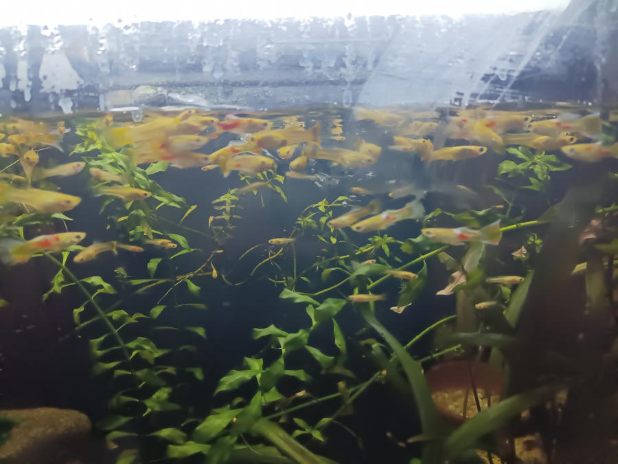 Guppys mâle et femelle. Prix dégressif en fonction du nombre. 0,20 euros à partir de 10 guppys.