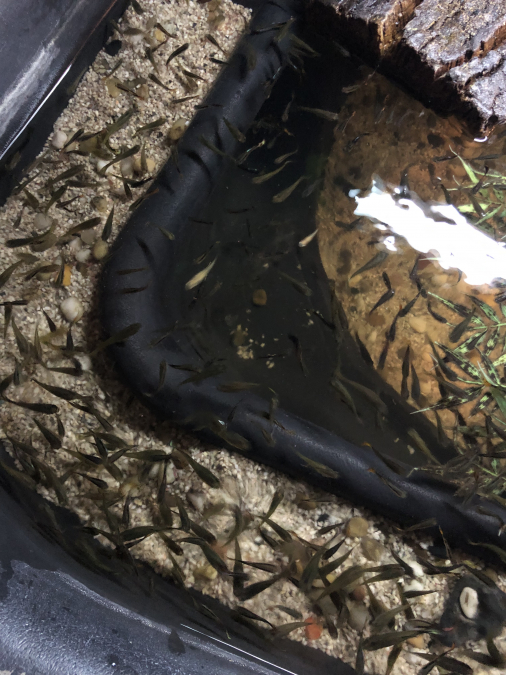 Je donne des guppy mâles et femelles ils sont plutôt foncé car ils vivent dans un bassin d’intérieur noir, mais ils possèdent des couleurs différentes au niveau de la queue.