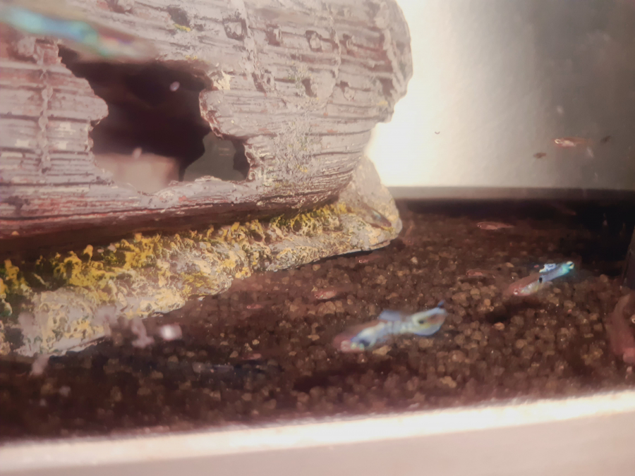 jeune mâle endler couleur bleu, tiger et autre de couleur noir jaune et orange. Jeunes femelles dispo 0,25E