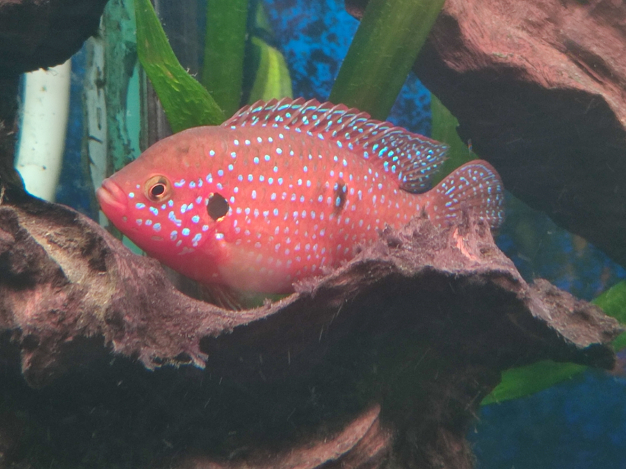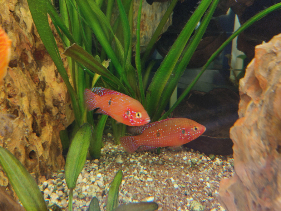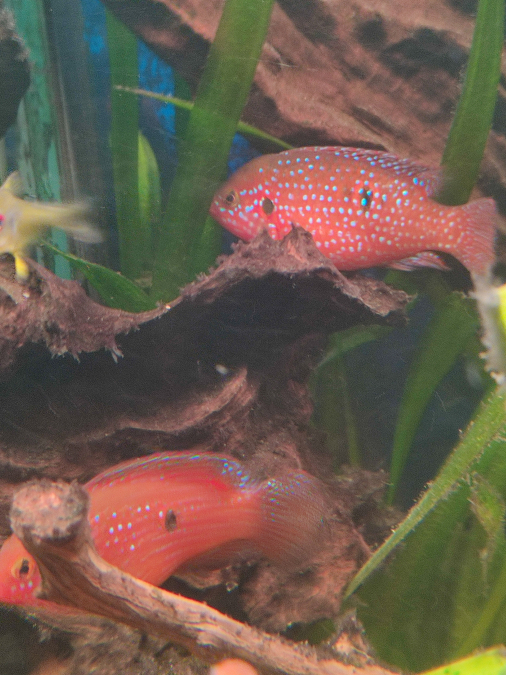 A vendre 2 de mes couples d'Hemichromis Lifallili appelé aussi Cichlidés Joyaux - 20 € le couple Sujet de plus de 10 cm issus de reproduction naturelle dans mon bac de 1000 litres. Actuellement j'ai 6 couples de Lifallili et je veux réduire un peu la population de cette variété. Mon bac est peuplé de : Cichlidés Américain 9 Heros Severus de 16 à 18 cm , 3 Nigrofaciatus, 3 Guyanacara, 1 couple de Jack Dempsey Bleu Electrique Cichlidés Africain Fluvial une bonne vingtaine de Lifallili dont 6 couples adulte et juvenile Tetra et autres Bancs de Tetra Citrons, Feu de position, Serpae, Bentosi, quelques Guppy mais cela fait plus de 10 ans que je n'en ai pas mis, ancistrus