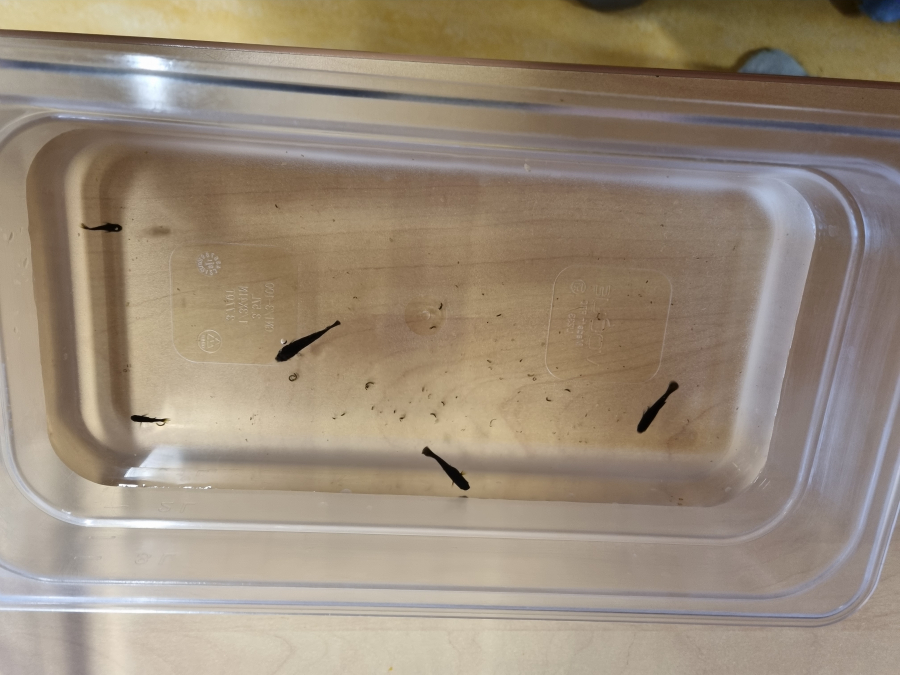 J'ai eu récemment des naissances dans mon aquarium de black molly et je souhaite en donner une partie. Ils sont à venir chercher sur place :) Ils sont à priori noirs, mais je ne sais pas encore si ce sont des black molly lyre ou pas (j'ai les deux dans mon aqua). Ps: les bébés poissons sont actuellement dans l'aquarium avec les autres et non dans le bac sur la photo