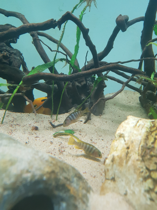 Bonjour, je vends cichlidé mbuna jaune ou albinos de grande taille