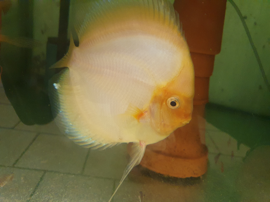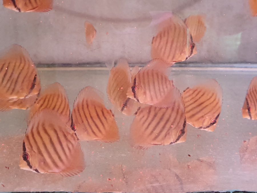 Jeunes discus d'élevage amateur de 5 a 6 cm , de différentes variétés , élevés en eau du robinet mange.t des nourritures sèches et congelées.