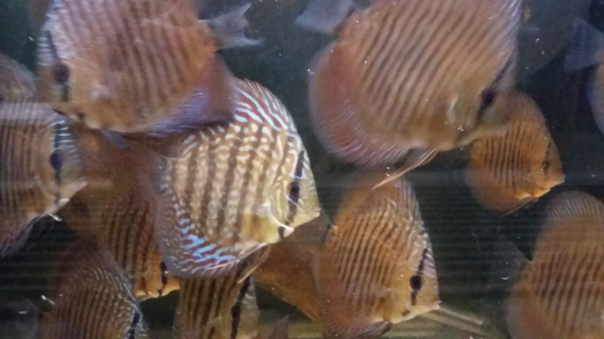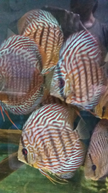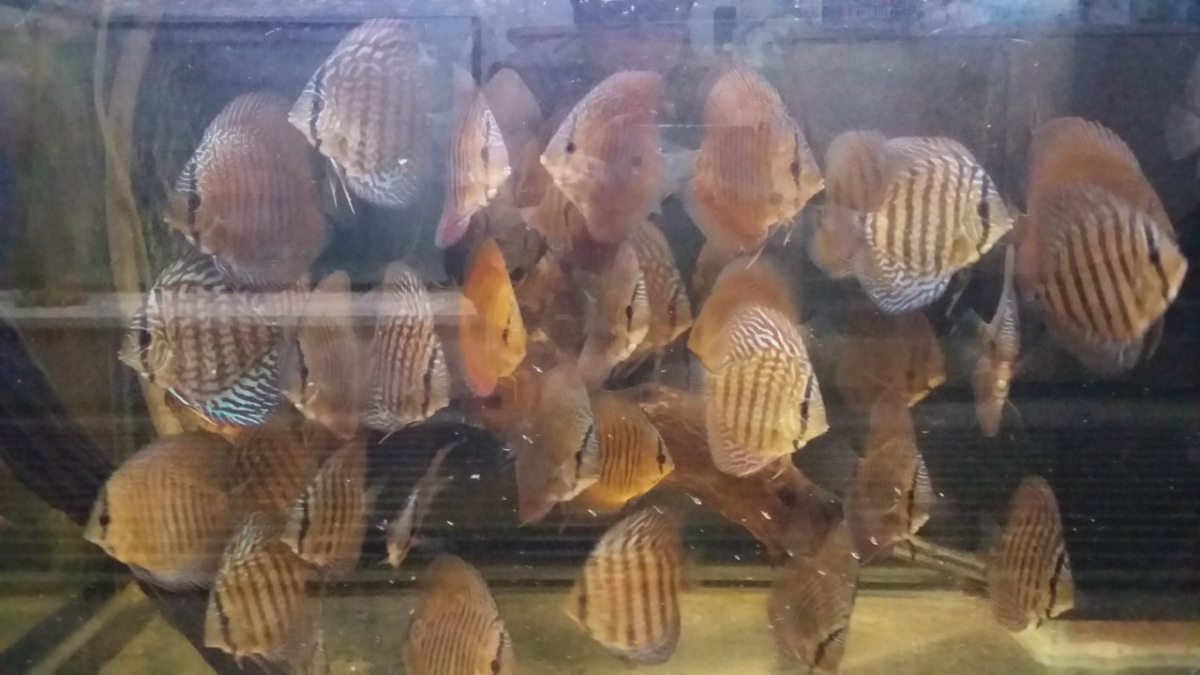 Vendons une quarantaine de jeunes Discus rouge turquoise snakeskin nés chez nous dans notre Fishgrange. La plupart des poissons mesurent 10 à 12cm , certains sont plus petits ou plus grands. Ils sont nourris aux granulés (JBL, tetra, Sera,...) , artémias et discusfood congelé (dont ils raffolent) et ont été vermifugés en juillet.