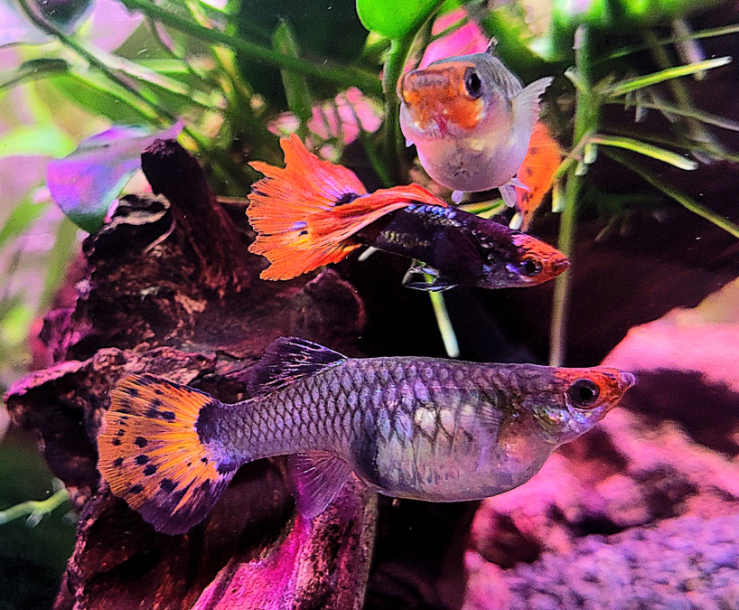 Je propose plusieurs guppys en bonne santé : - Bébés guppys ( 1 semaine 0,10€ ) - Jeunes guppys ( 1 mois 0,50€ ) - "ados" guppys ( 2 mois )2 mâles et 4 femelles (2,50€ les 3) - 2 femelles adultes pleines (2€ les deux) Ils sont nés et élevés en aquarium dans de bonnes conditions. Si vous êtes intéressé(e), merci de me contacter par message et je vous donnerai toutes les informations.