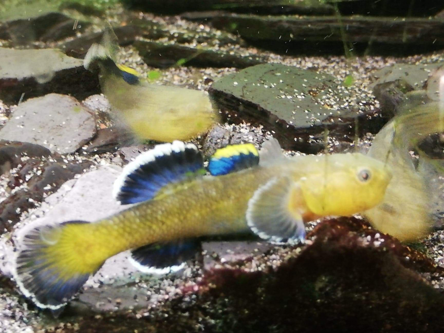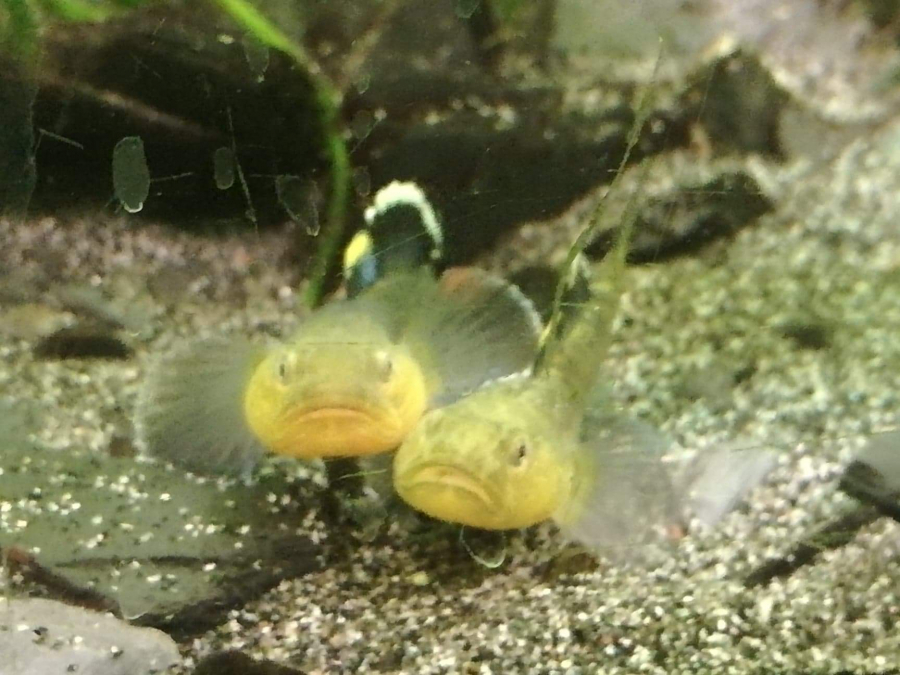 Jeunes Poissons Gobie d'Australie. "Malgré sa faible distribution, le Chlamydogobius eremius suscite un vif intérêt et la curiosité en aquariophilie. C'est un poisson de fond passionnant à observer multipliant les originalités comportementales. A commencer par une absence remarquée de vessie natatoire qui donne l'impression qu'il avance en faisant des petits bonds au lieu de nager. Ensuite, sa morphologie est caractéristique et peu commune. Les luttes territoriales entre mâles sont des véritables spectacles d'intimidation où les Gobies haussent leurs têtes et gonflent leurs branchies pour impressionner le rivale. Pas d'aquarium idéal, il s'adapte à toutes les conditions. Il n'y a pas d'aquarium idéal pour le Chlamydogobius eremius étant donné que ce poisson dans son environnement naturel est soumis à des perpétuelles variations très importantes. Le Gobie du désert s'adaptera donc à pratiquement tout type d'aquarium. Au niveau de la température, il n'y a vraiment aucune règle. Cette espèce de Gobie supporte aussi bien les eaux froides que chaudes. Même si l'élevage du Chlamydogobius eremius dans de bonnes conditions ne nécessite pas forcément un grand volume (54 litres suffisent pour un couple), il ne faut tout de même pas maintenir ce poisson dans un nano.