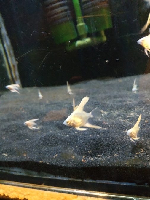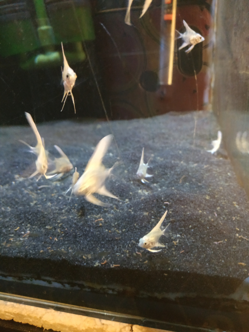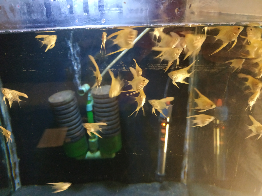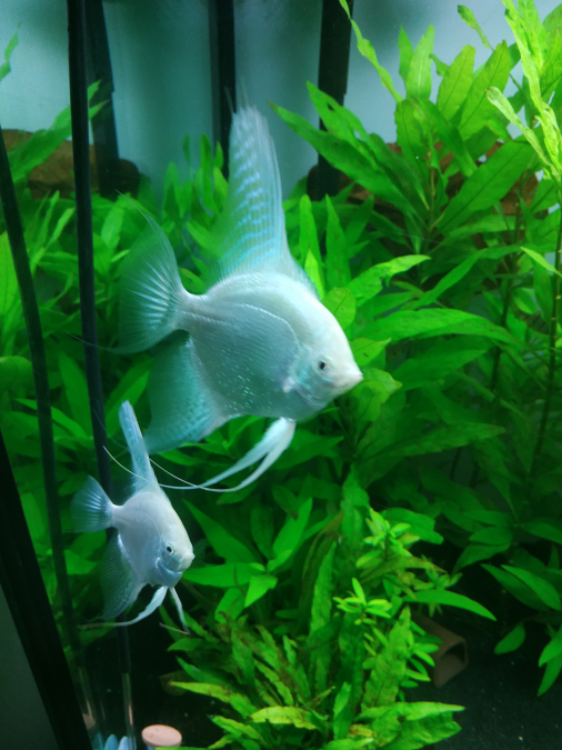 Disponibles pour continuer à grandir une trentaine de jeunes scalaires blancs Platinum entre 2 et 3 cm, nourriture variée, 100% eau de conduite. Les dernières photos dont celles des parents. Prix dégressif en fonction de la quantité.
