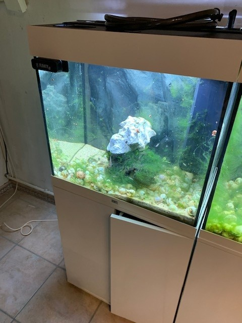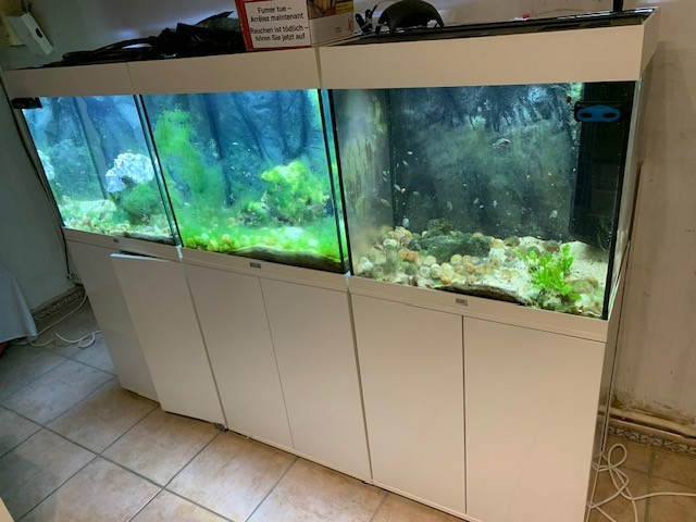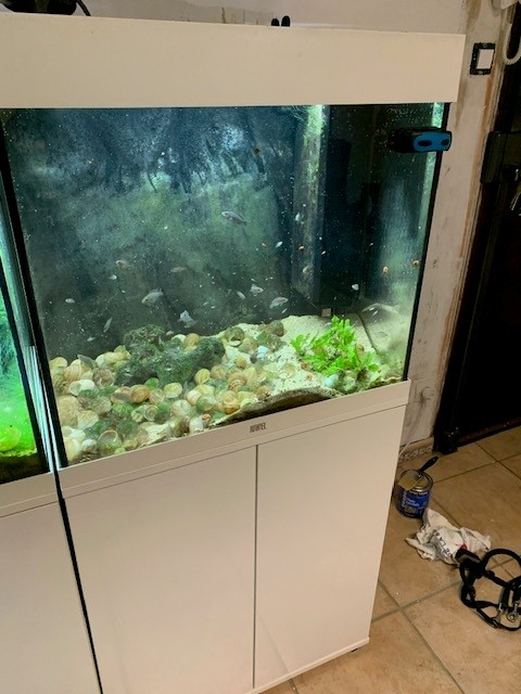 3 aquariums complets Juwel Lido 120 avec TOUT ( éclairage led, chauffage, bioflow avec pompe, distributeur de nourriture, sol calcaire, coquilles et colonies de cichlidés du tanganyika ) et pour chacun son meuble blanc laqué. Livraison possible sur le 54