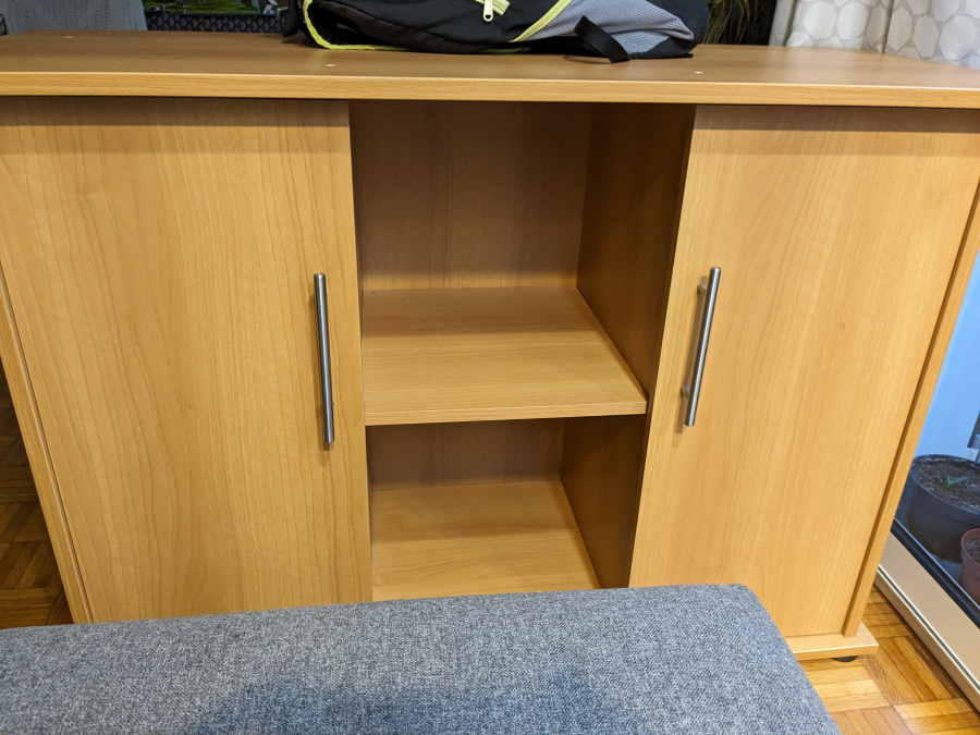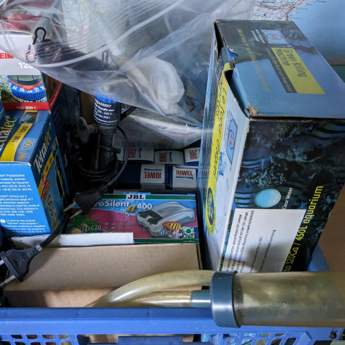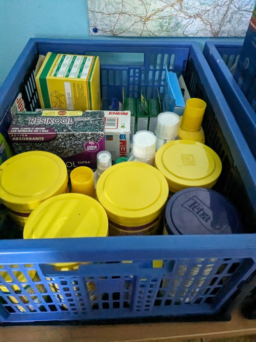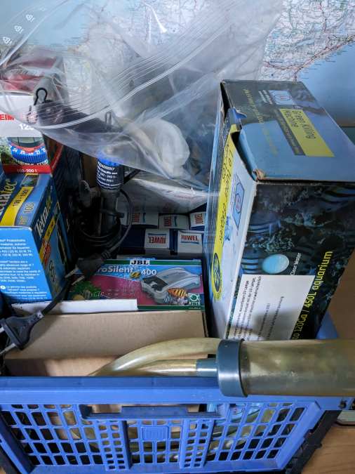 Vends cet aquarium complet avec meuble, filtre pompe. Les boîtes d'aliments et d'autre accessoires sont également fournis.