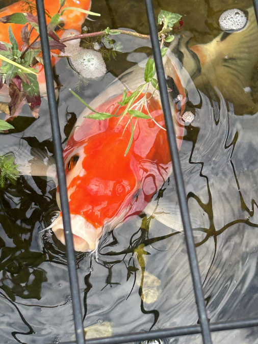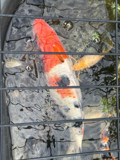 Vends KARPE koi car bassin trop petit. Elle mesure entre 30 et 40 cm. Elle pèse environ entre 3 et 5 kg. Vous pouvez la nourrir en mettant les graines dans la main.