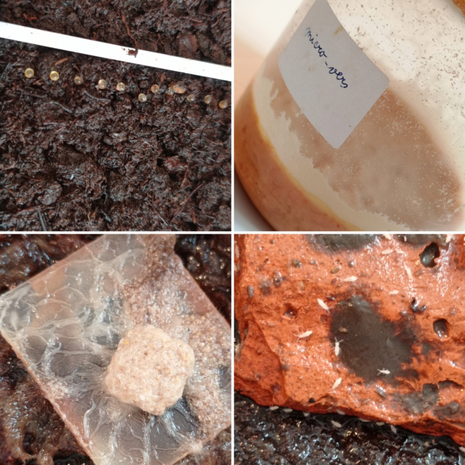 Dans ce kit, vous trouverez : -une dizaine d'oeufs d'Aphyosemion australe doré (autres espèces possible selon disponibilité). -une souche de paramécie parfaite pour nourrir les alevins juste après éclosion. - une souche de micro-vers pour le démarrage alimentaire des alevins récemment éclos. -une souche de vers grindals pour les alevins de plus grosse taille. -une souche de collemboles a distribuer en complément des grindals. Le kit peut être complété a la demande et selon les disponibilités du moment