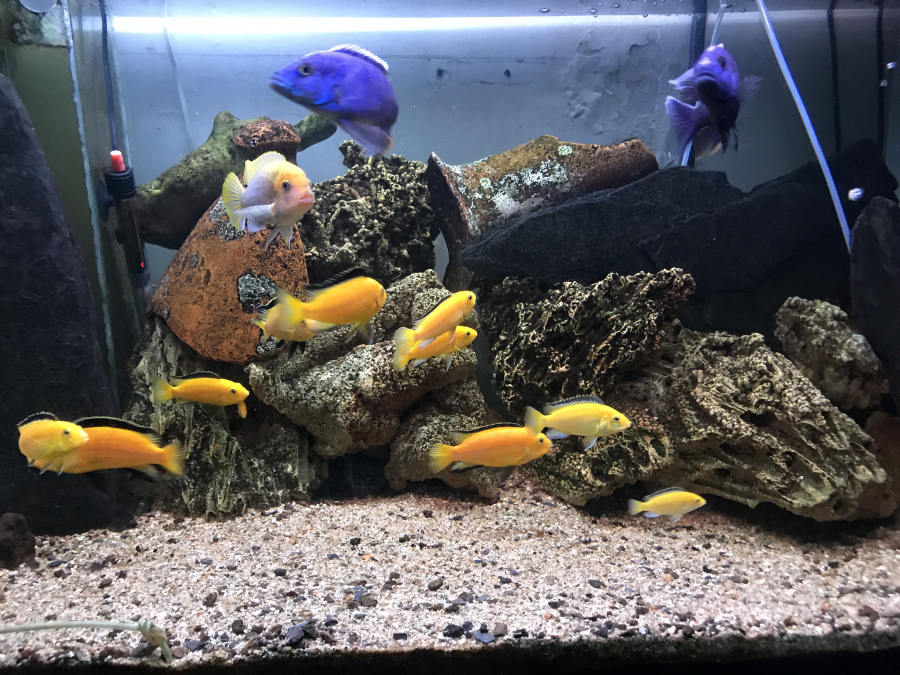 Comme suite à une bonne reproduction dans mon aquarium, je vend des labidochromis caeruleus. Ces poissons jaune à dorsale noire sont des ciclidés du la Malawi Ils font de 6 à 10cm: je les vend 4 euros l'unité