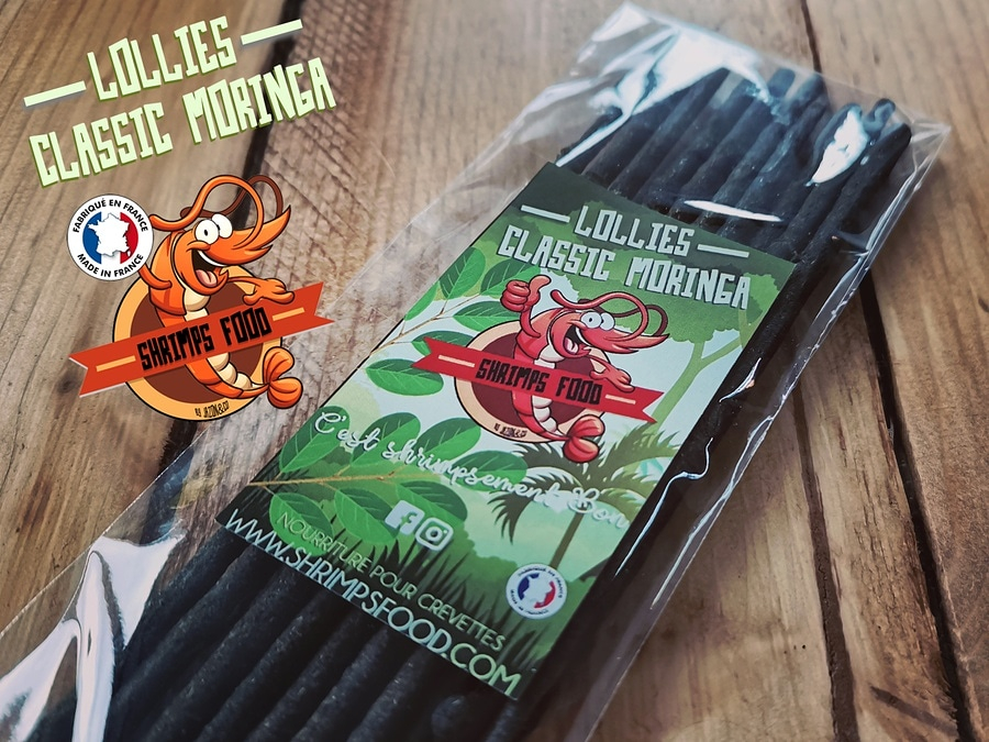 X10 Lollies Moringa Produit fabriqué en France (Dinan-Bretagne) Les lollies sont une vraie friandise pour nos crevettes. C'est un bâton en bois recouvert de nourriture qui se pique dans votre sol d'aquarium. Un aspect ludique et intéressant pour observer vos plus belles espèces. Enlevez le bâton une fois consommé Taille : 25cm ingrédients : Oeufs + moringa Les lollies pour crevettes par Shrimpsfood