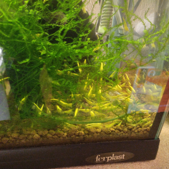 quelque lots de 10 crevettes+2 ou3 en plus.. yellow néon de tailles variées, vivent dans l'eau du robinet. 12 euros le lot de 10 crevettes