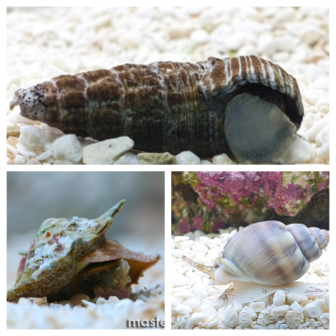Vends lot de Détritivores (eau de mer) : 5 escargots Nassarius 1 escargot Turbo 1 escargot Astrea étoilé 3 Escargots rhinoclavis 2 crevettes Lysmata debelius Ne seront pas vendus séparément. A venir chercher à Thouars. Pas de livraison. Prix non négociable.